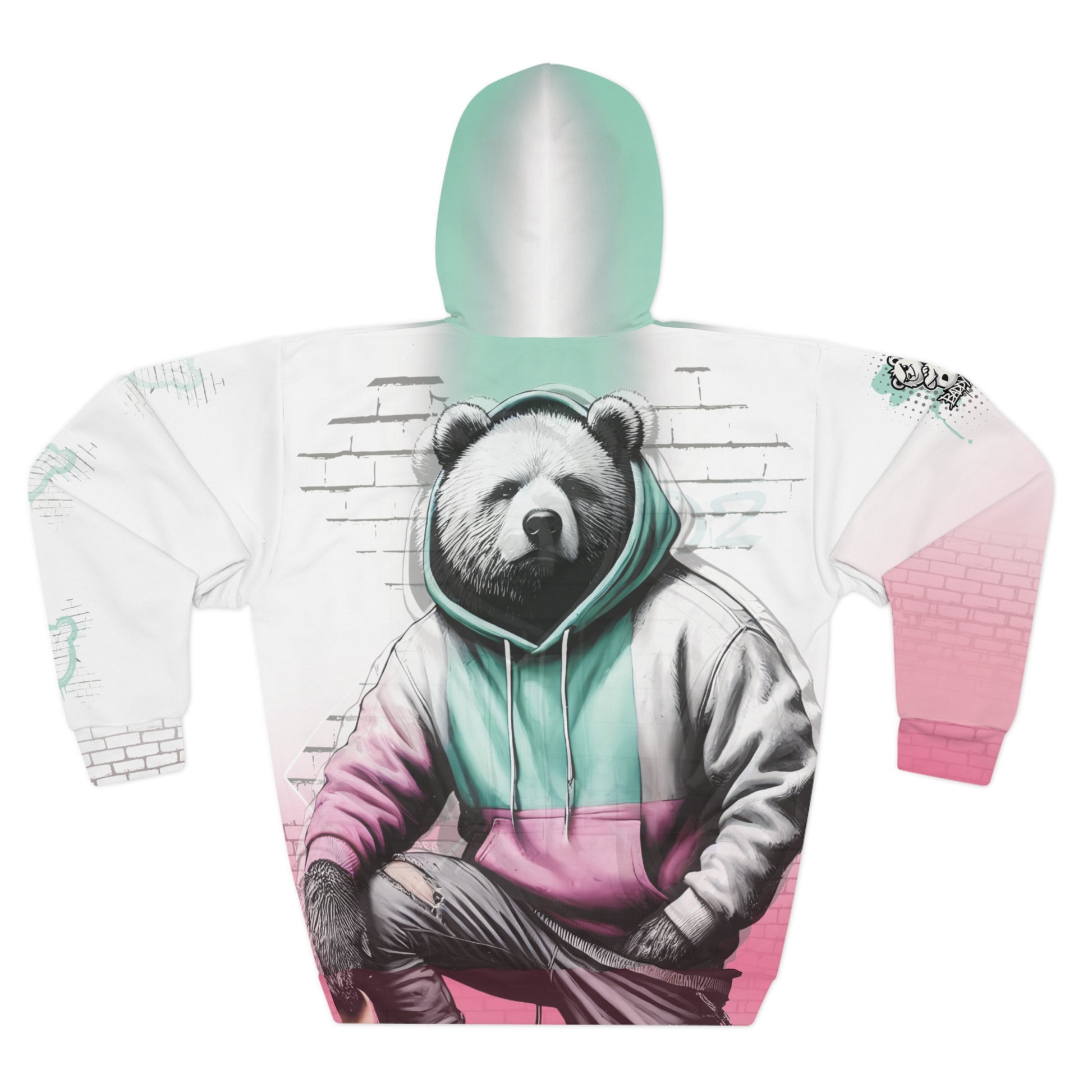 This hoodie speaks without saying a word. Baddy Bear posted up, hoodie on, board in hand—a reminder that confidence isn’t loud, it’s undeniable. The faded brick gradient blends street art with effortless cool, while the back goes full statement mode—the kind of design that doesn’t just get noticed, it gets remembered.