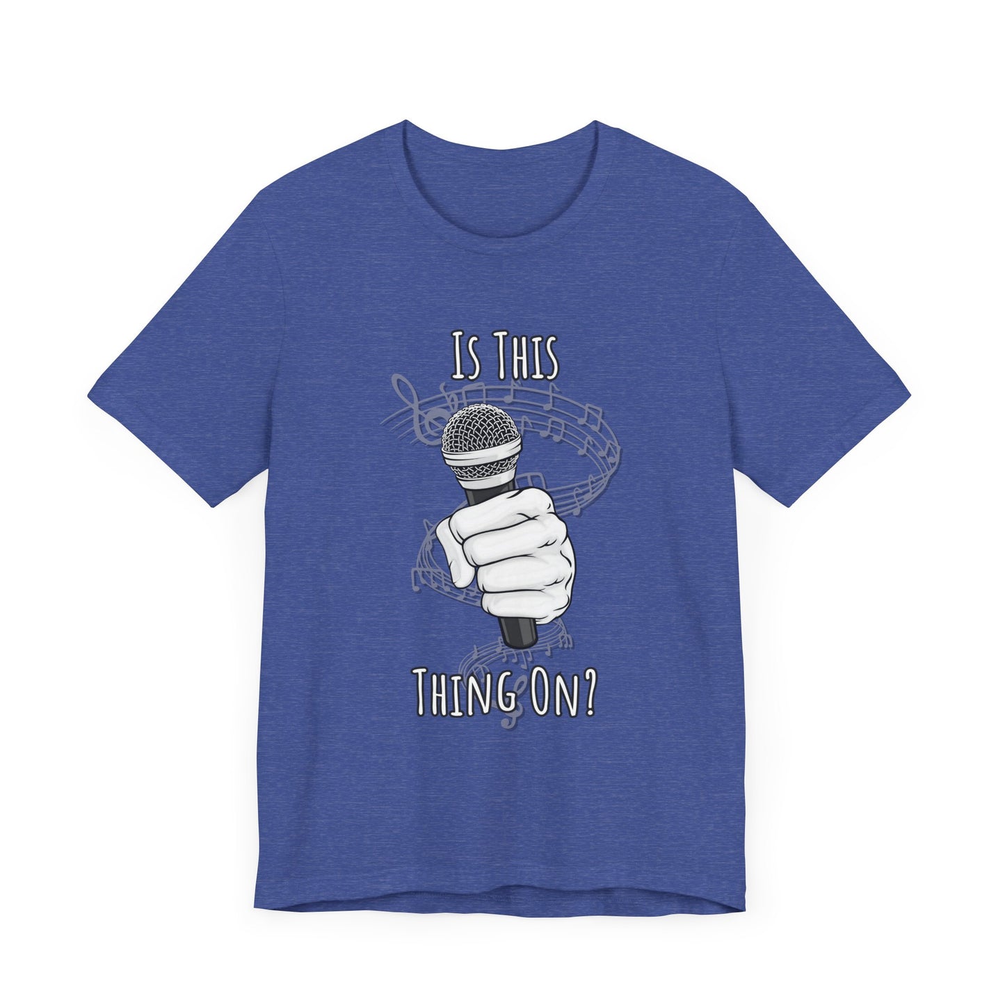 Mic check, 1-2-1-2! The 'Is This Thing On?' Karaoke T-Shirt is here to steal the spotlight (or at least make sure you're dressed for it). Whether you're belting out power ballads, nailing that perfect falsetto, or just courageously reading the lyrics off the screen, this shirt screams, 'I was born for this moment'—but, you know, in a chill, breathable cotton kind of way.