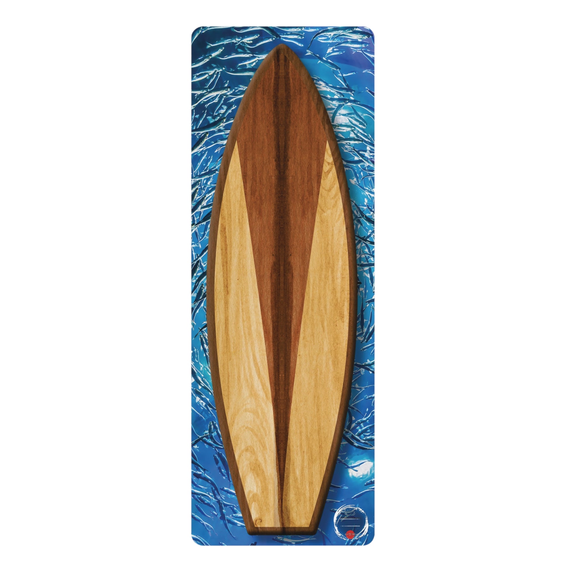 Where artisan surf culture meets mindful design. The Woodgrain Wavecraft mat showcases a beautifully rendered wood-inlay surfboard floating on textured blue water — an homage to craftsmanship, natural elements, and laid-back rhythm. Made for the practitioner who sees yoga as both ritual and lifestyle, this mat doesn’t shout — it speaks in smooth, steady flow.